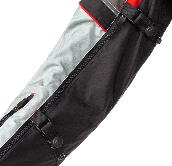 Multifunkční bunda na motorku. Vhodná pro cestování v jakémkoliv počasí. Nakonfigurujete pomocí vnitřních vrstev - voděodolné vložky a softshellové bundy. Svrchní materiál tvoří vysoce pevnostní Cordura®. Důmyslný systém větracích panelů a kapes zajistí optimální klima uvnitř bundy v horkých dnech. Obvody si regulujete nastavitelnými páskami na límci, rukávech, pasu i boků. Pro uložení klíčů, peněz, dokladů slouží vnitřní náprsní kapsy nebo vnější na obou rukávech a ve spodní části bundy. Do podélné kapsy na zádech se vám vejde i složený "nepromok". Všechny kapsy jsou řešeny jako uzavíratelné. Bunda je konstrukčně řešena pro splnění vysokých nároků dnešního cestovatele na dlouhé i kratší trasy. Typickým představitelem je cestovní enduro BMW GS, HONDA AFRICA a další, včetně cestovních motocyklů a "naháčů".