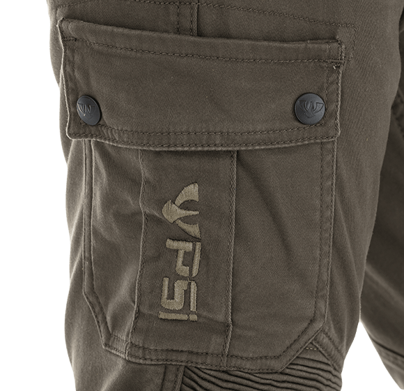 Kevlarové jeansy v designu ARMY. Určeny na motorku i outdoorové aktivity. Vyrobeny z bavlny pro optimální prodyšnost. Elastan zajistí komfort pohybu i při SLIM střihu. Exponovaná místa (kolena, sedací část, zadní část stehen) jsou zesílena proti prodření aramidovými vlákny z Kevlaru® od firmy DuPont®. Součástí jsou 3D chrániče na kyčlích a kolenou, které lze při praní pohodlně vyjmout. V pase je textilní opasek s provlékací přezkou pro dokonalé utažení a také kroužek na klíče. Co oceníte nejvíc jsou kapsy! Model má 8 kapes. Kromě běžných kapes zadních a ve předu na ruce, mají dvojité nakládané kapsy na stehnech, přičemž jedna je vždy uzavíratelná na druky a vejdou se do nich opravdu velké předměty. Baleno v přenosné tašce.