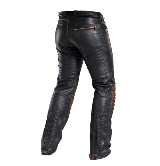 Kožené kalhoty doplňují bundu CR7. Komplet je určen pro pohodové chvíle na dvou kolech. Kalhoty jsou vyrobeny z dokonale měkčené teletiny, která zaručí komfort pohybu. Bezpečnost zajišťuje set chráničů - kyčle, kolena, holeně, zdvojení sedací části kevlarovou tkaninou. Retro design, zpracování, top kůže, detaily zipů ... to vše jako celek působí jedinečně!