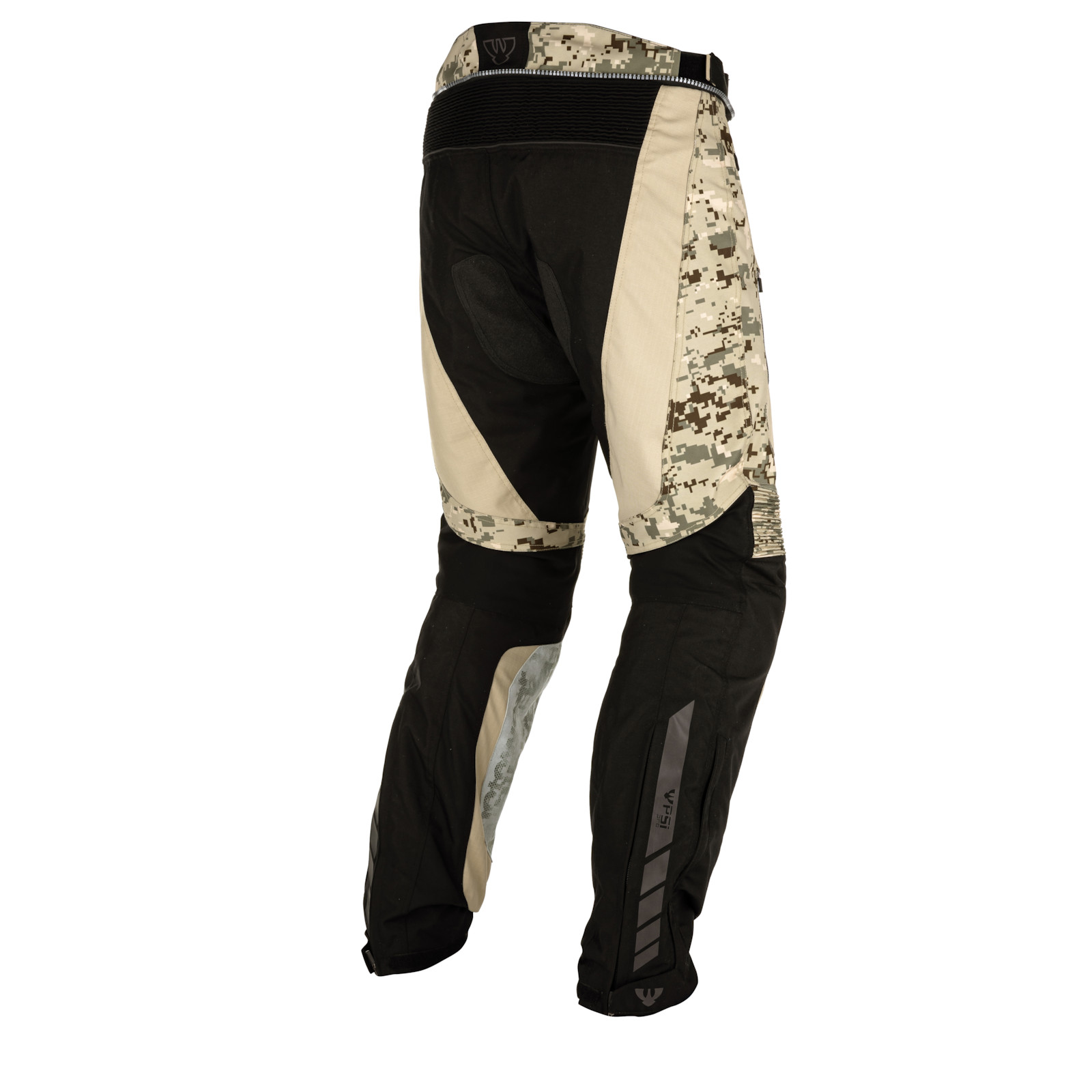 Multifunkční kalhoty na motorku. Vhodné pro cestování v jakémkoliv počasí. Nakonfigurujete pomocí vnitřních vrstev - voděodolné a oteplené vložce. Svrchní materiál tvoří vysoce pevnostní Cordura®. Větrací panely na stehnech zaručí dobré odvětrání v horkých dnech. Nohavice díky dvěma regulujícím zipům můžete vložit jak dovnitř bot, tak nahoru přes ně. Sedací část má protiskluzové prvky. Vnitřní část kalhot je zesílena kůží jako prevence poškození kalhot od rámů motocyklů. Konstrukční řešení splňuje vysoké nároky dnešního cestovatele na dlouhé i kratší trasy. Typickým představitelem je cestovní enduro BMW GS, HONDA AFRICA a další, včetně cestovních motocyklů a "naháčů".