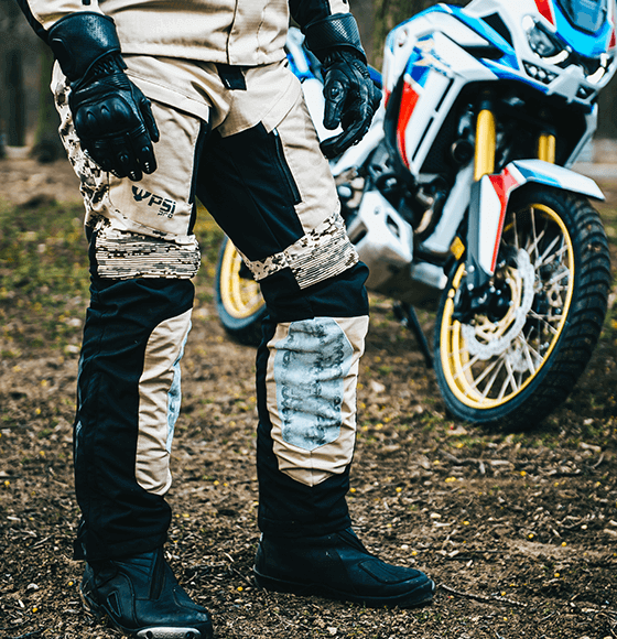 Multifunkční kalhoty na motorku. Vhodné pro cestování v jakémkoliv počasí. Nakonfigurujete pomocí vnitřních vrstev - voděodolné a oteplené vložce. Svrchní materiál tvoří vysoce pevnostní Cordura®. Větrací panely na stehnech zaručí dobré odvětrání v horkých dnech. Nohavice díky dvěma regulujícím zipům můžete vložit jak dovnitř bot, tak nahoru přes ně. Sedací část má protiskluzové prvky. Vnitřní část kalhot je zesílena kůží jako prevence poškození kalhot od rámů motocyklů. Konstrukční řešení splňuje vysoké nároky dnešního cestovatele na dlouhé i kratší trasy. Typickým představitelem je cestovní enduro BMW GS, HONDA AFRICA a další, včetně cestovních motocyklů a "naháčů".