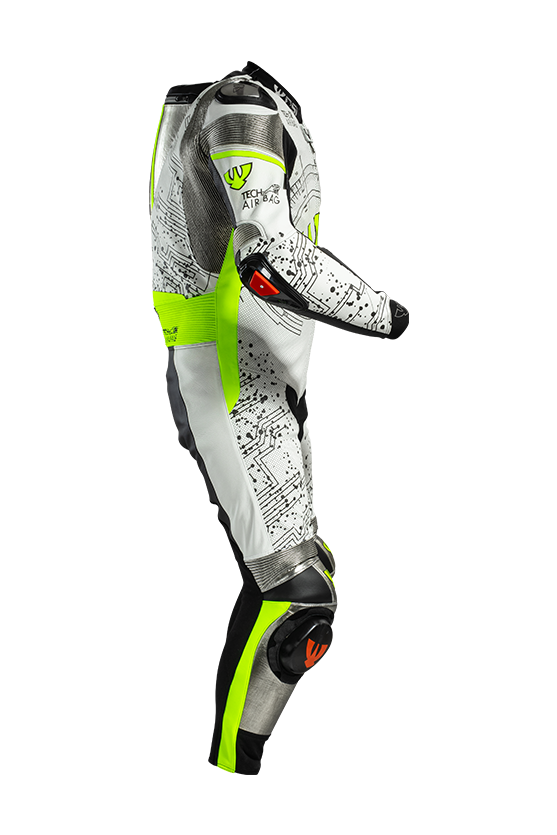 Kombinéza se zabudovaným airbagem TECH-AIR®. Nejvyšší stupeň ochrany! Systém pracuje elektronicky na základě softwaru ACU (Airbag Control Unit), který vyhodnocuje nebezpečnou situaci pro jezdce a v případě ohrožení se aktivuje. Výhodou je, že nejste k motocyklu připoutání žádným lankem. Dalším plusem elektronického řízení je, že nemusíte být na signálu, který vyžadují systémy s napojením na GPS. Airbag chrání v rozsahu 360° horní části těla. Zpevní ramena, hrudník, horní část břicha, záda a oblast ledvin. Kombinéza RACING GRID je pro airbag TECH-AIR® konstrukčně upravena a dodává se včetně kompletního systému. Je určena zejména na závodní tratě, proto je v základním vybavení veškerá racingová výbava. Obrovskou výhodou je, že Airbag TECH-AIR® lze konfigurovat z módu RACE (pro závody) do módu STREET (na cestu). Má dvě bombičky, v případě nehody na cestě se aktivují obě najednou a naplní se do neuvěřitelných 25 ms. Na závodní trati se plní nejprve jedna a po té vám zůstává ještě jedna možnost ochrany. Zvyšte svou bezpečnost na cestách, jezděte s airbagem!