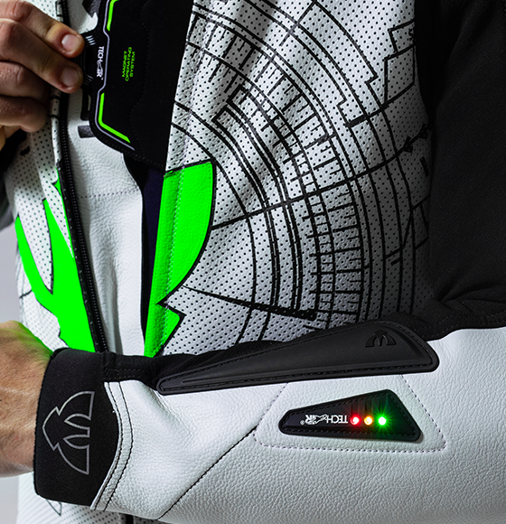 Kombinéza se zabudovaným airbagem TECH-AIR®. Nejvyšší stupeň ochrany! Systém pracuje elektronicky na základě softwaru ACU (Airbag Control Unit), který vyhodnocuje nebezpečnou situaci pro jezdce a v případě ohrožení se aktivuje. Výhodou je, že nejste k motocyklu připoutání žádným lankem. Dalším plusem elektronického řízení je, že nemusíte být na signálu, který vyžadují systémy s napojením na GPS. Airbag chrání v rozsahu 360° horní části těla. Zpevní ramena, hrudník, horní část břicha, záda a oblast ledvin. Kombinéza RACING GRID je pro airbag TECH-AIR® konstrukčně upravena a dodává se včetně kompletního systému. Je určena zejména na závodní tratě, proto je v základním vybavení veškerá racingová výbava. Obrovskou výhodou je, že Airbag TECH-AIR® lze konfigurovat z módu RACE (pro závody) do módu STREET (na cestu). Má dvě bombičky, v případě nehody na cestě se aktivují obě najednou a naplní se do neuvěřitelných 25 ms. Na závodní trati se plní nejprve jedna a po té vám zůstává ještě jedna možnost ochrany. Zvyšte svou bezpečnost na cestách, jezděte s airbagem!