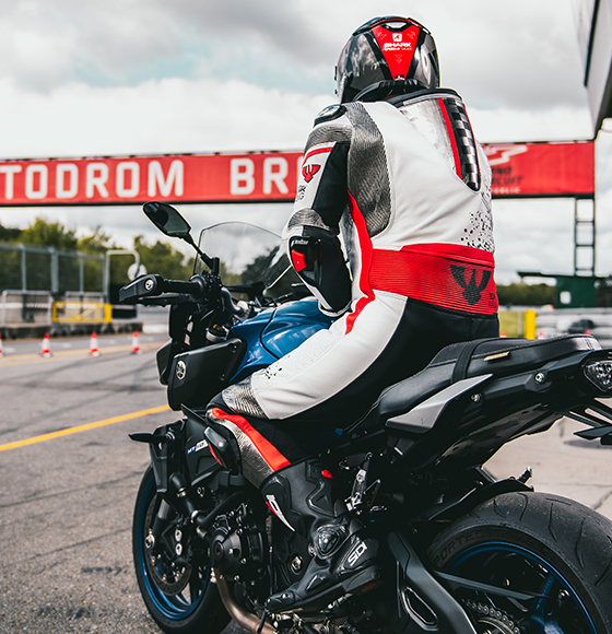 • protiskluzové pásky na stehnech pro lehkou ovladatelnost motocyklu