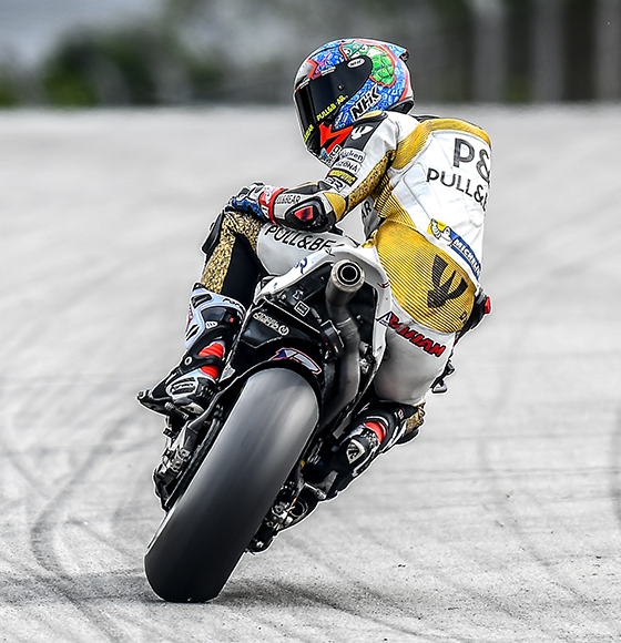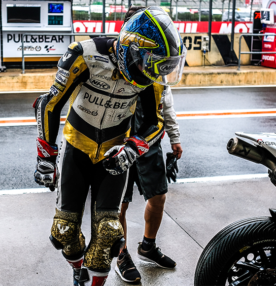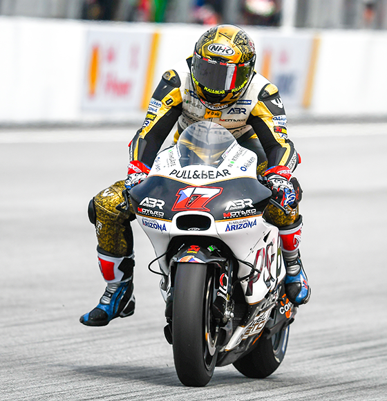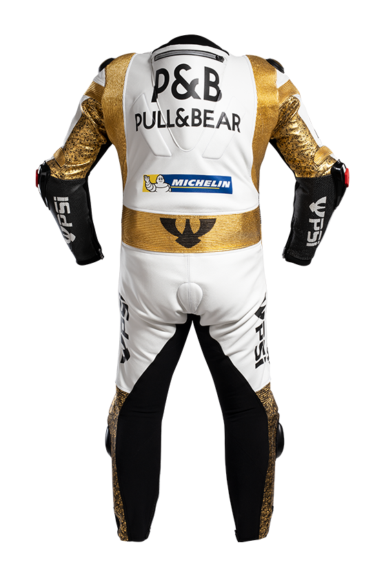 Závodní kombinéza v replice Karla Abrahama, jezdce MotoGP. Model vychází z posledního účinkování španělského týmu ANGEL NIETO TEAM v královské kubatuře MotoGP. I vy se nyní můžete obléct do designu, který patřil mezi světovou špičku! Kombinéza je vyrobena z hovězí kůže a má všechny prvky závodní ochrany, včetně vyměnitelných sliderů na loktech, pokud se dostáváte v náklonech stejně nízko jako piloti MotoGP. Set chráničů tvoří PSI® technologie, Sas-Tec® chrániče z viskózně elastické pěny, které doplňuje zesílení paměťovou pěnou Viscofoam® a Kevlarem®.