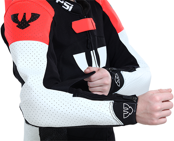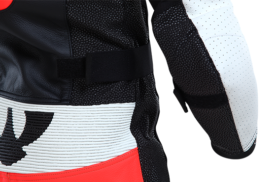 Dětská motocyklová kombinéza. Vhodná na minibike a další typy motorek nebo čtyřkolek pro děti. Kombinéza splňuje předpisy mezinárodního sportovního řádu FIM, můžete použít jak na závody, tak na hobby jízdu. Materiál: kombinace hovězí kůže, vysocepevnostní textilie Cordury® a keramiky od firmy Schoeller. Díky strečové corduře je kombi dostatečně pohyblivá. Maximální ochranu poskytuje díky velkému podílu kůže a keramiky na exponovaných místech a dále setu gelových protektorů. Výhodou je možnost fixace chráničů na loktech pomocí popruhů a možnost regulace obvodu v těle. Můžete tak pořídit dítěti kombi na déle než jednu sezónu při zabezpečení maximální ochrany.