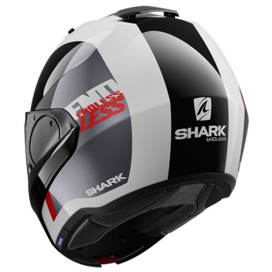 Cestovní motocyklová přilba s překlapovací bradou Shark EVO-ES, která ztělesňuje veškeré odborné znalosti společnosti SHARK v oblasti navrhování modulárních přileb.