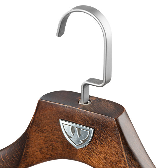Luxusní ramínko z masívu. Vynikající řemeslné zpracování. Dlouhá životnost. Vhodné na těžké oblečení. Obzvláště doporučujeme na kombinézy s implementovaným airbagovým systémem.