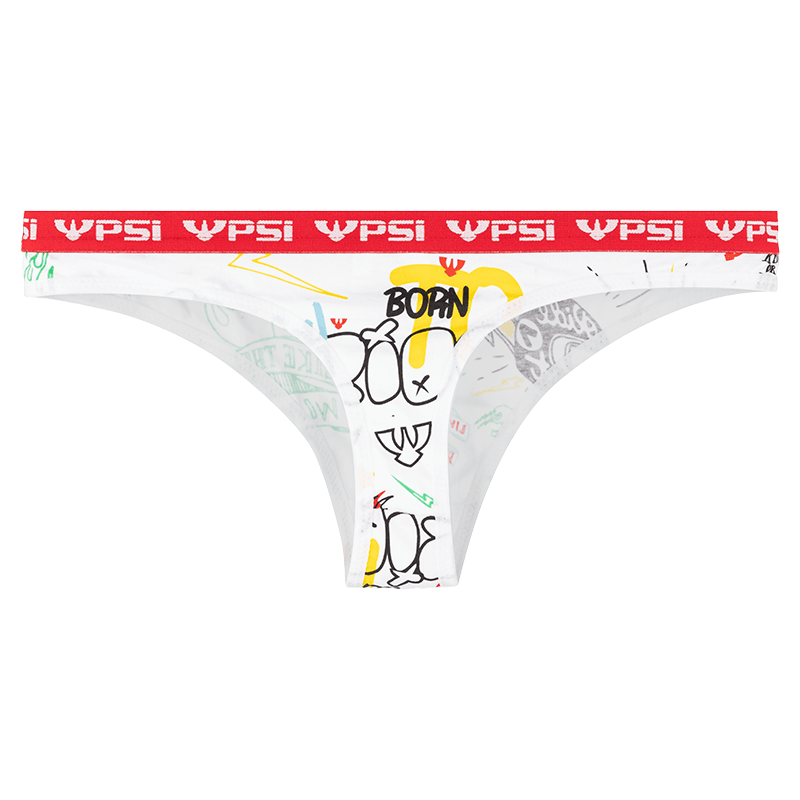 Bavlněné dámské kalhotky ve střihu string. Originální design inspirovaný motosportem. Díky bavlně se příjemně nosí. Ukončení v pase kontrastní pruženkou s logem PSí.