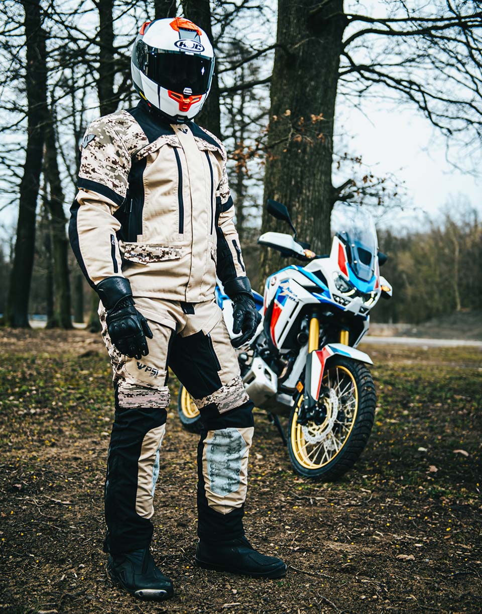 Těší nás, že Ti můžeme představit technicky propracovaný a zcela unikátní komplet pro cestování. Při jeho vývoji jsme si stanovili tři základní parametry: tepelný komfort, minimalizace zranění a optimální střih pro jízdu za vyšších rychlostí. Výsledkem je bunda a kalhoty, které Ti nabízí stejnou ochranu jako jezdci v MotoGP závodní kombinéza.