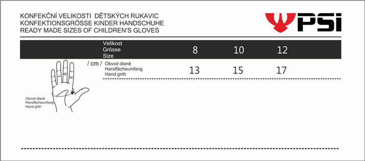 Změřte obvod dlaně krejčovským metrem a určete přibližnou velikost dle tabulky.